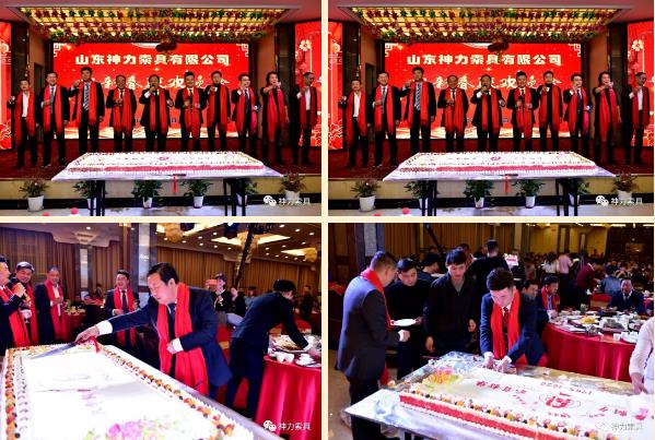 在熱烈地掌聲中,公司領(lǐng)導(dǎo)上臺(tái)致新春賀辭,感謝大家的辛勤付出和不懈努力,也希望大家再接再厲再創(chuàng)輝煌 。然后,公司董事長(zhǎng)杜亞中先生親自切開(kāi)神力索具成立55周年“不負(fù)韶華 只爭(zhēng)朝夕”的蛋糕,并由公司總經(jīng)理杜大平先生親自分發(fā)!神力一家親,同甘共苦,如是而已!