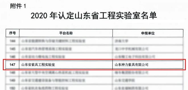 近日,山東省發(fā)改委發(fā)布《關于公布2020年認定山東省工程實驗室(工程研究中心)名單的通知》,山東神力索具有限公司的索具性能檢測檢驗實驗室被認定為“山東省索具工程實驗室”。