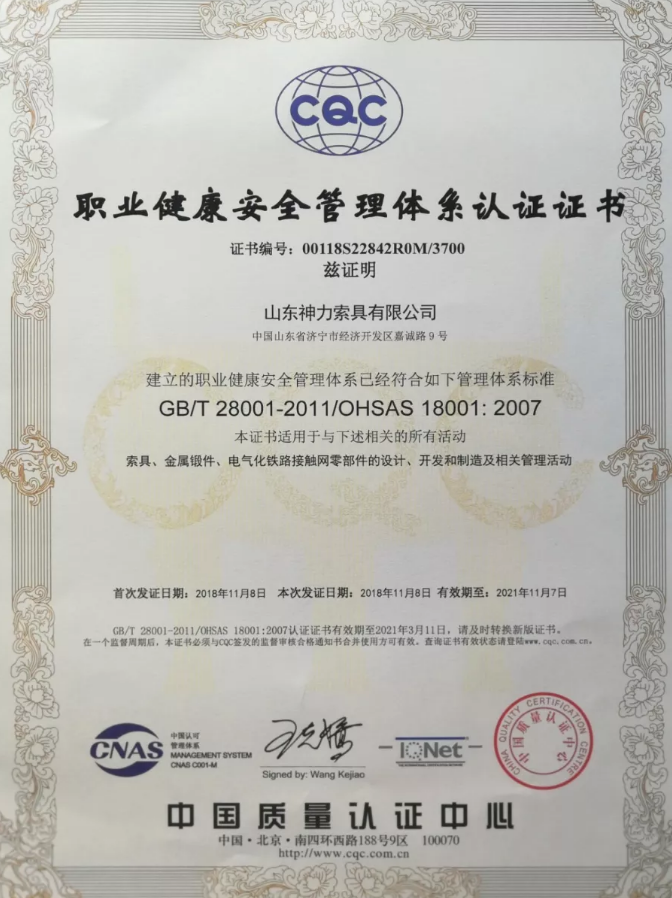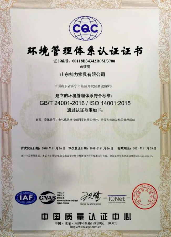 山東神力索具有限公司順利通過2020年度“三標”體系認證