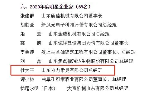 喜訊丨杜大平總經(jīng)理榮獲濟(jì)寧市“2020年度明星企業(yè)家”稱號(hào)