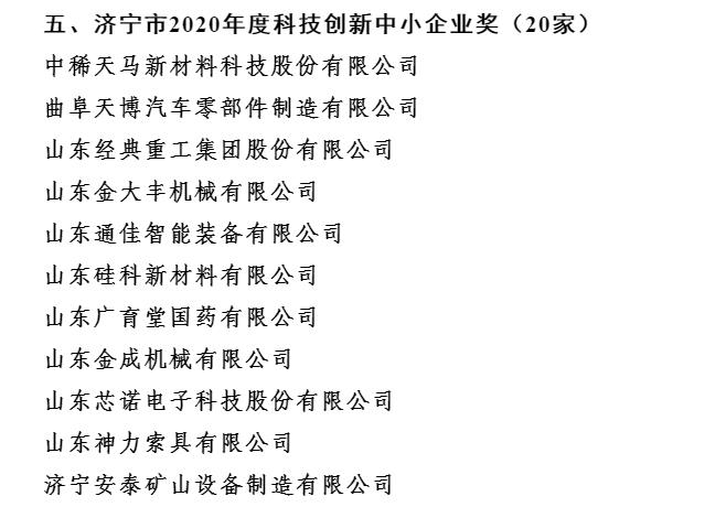 5月11日,根據(jù)濟寧市委、市政府工作安排,經(jīng)綜合評定、相關部門推薦提報、征求部門意見,并經(jīng)市委、市政府研究,確定了濟寧市2020年度科技創(chuàng)新先進單位及個人擬表揚名單,現(xiàn)已公示。其中,我公司榮獲“濟寧市2020年度科技創(chuàng)新中小企業(yè)獎”。