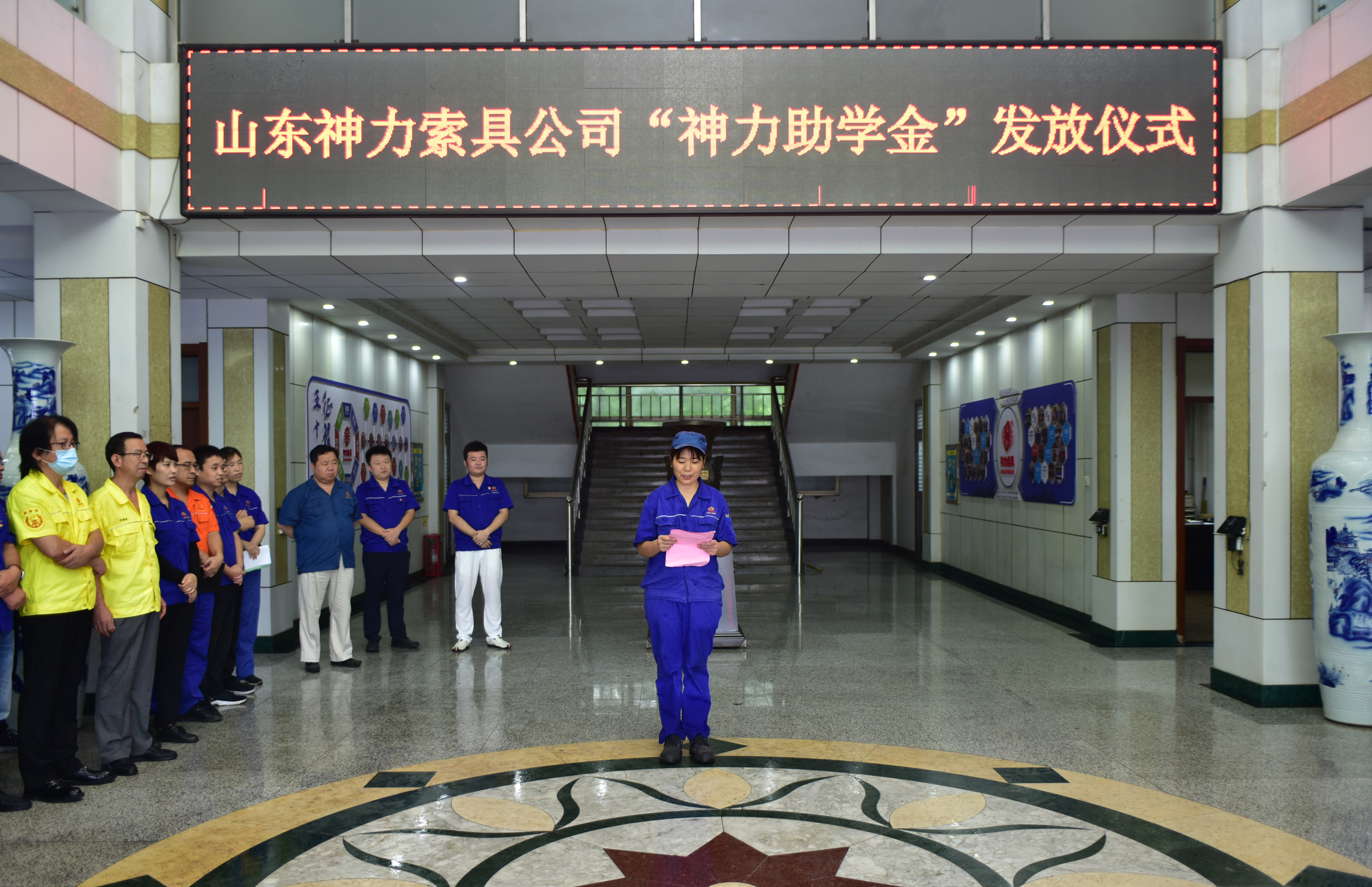 8月30日上午, 山東神力索具有限公司在辦公樓大廳為今年夏季高考中金榜題名的19位學(xué)子家庭舉行“神力助學(xué)金”發(fā)放儀式。公司董事長杜亞中、總經(jīng)理杜大平、常務(wù)副總楊永海、工會(huì)主席李廣德、市助企攀登干部馮超等領(lǐng)導(dǎo)出席儀式。