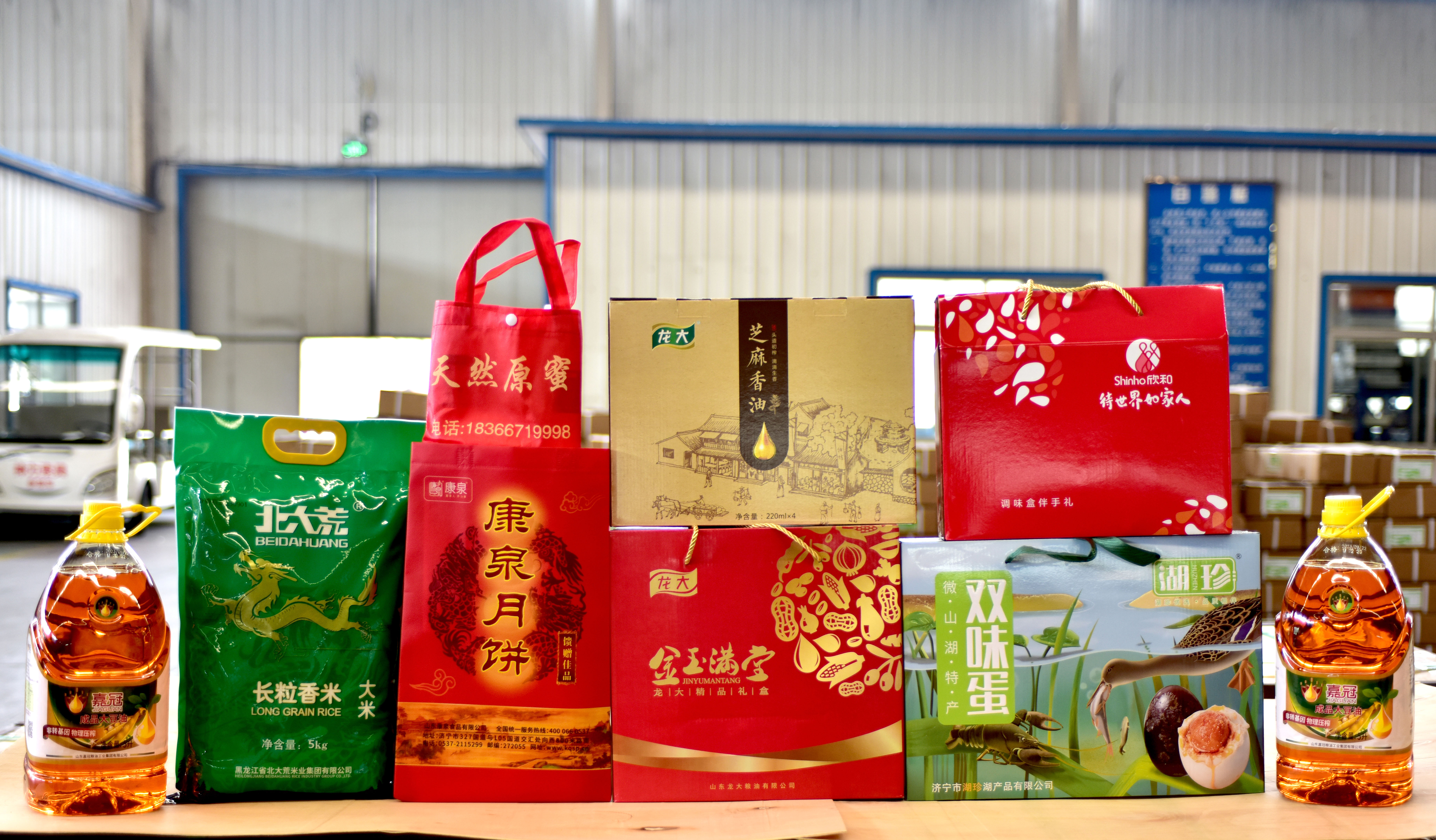 公司總經(jīng)理杜大平精心挑選了康泉月餅、長粒香米、天然原蜜、調(diào)味品、嘉冠大豆油、雙味蛋、龍大粉絲、芝麻香油共八款節(jié)禮。柴米油鹽,人間煙火,情深意切,滿是真情!