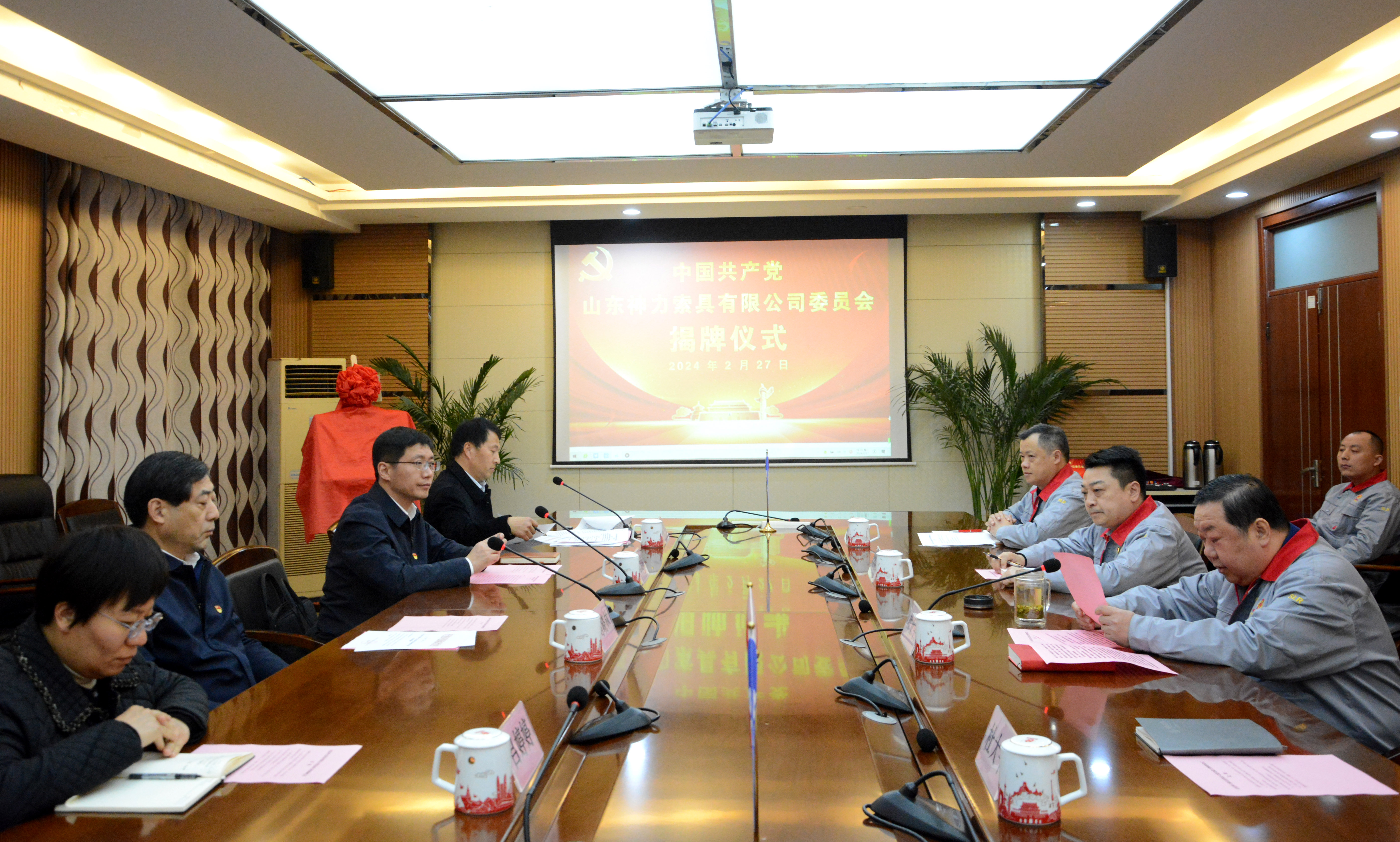 2月27日下午,中國(guó)共產(chǎn)黨山東神力索具有限公司委員會(huì)揭牌成立儀式在公司辦公大樓隆重舉行!在園區(qū)綜合黨委書記柳軍同志的主持下,區(qū)黨工委書記、管委會(huì)主任劉曉林,區(qū)黨工委委員、組織部部長(zhǎng)馬龍偉,區(qū)組織部分管負(fù)責(zé)人,園區(qū)綜合黨委書記,神力索具黨委書記、委員等共約50人參加本次會(huì)議。