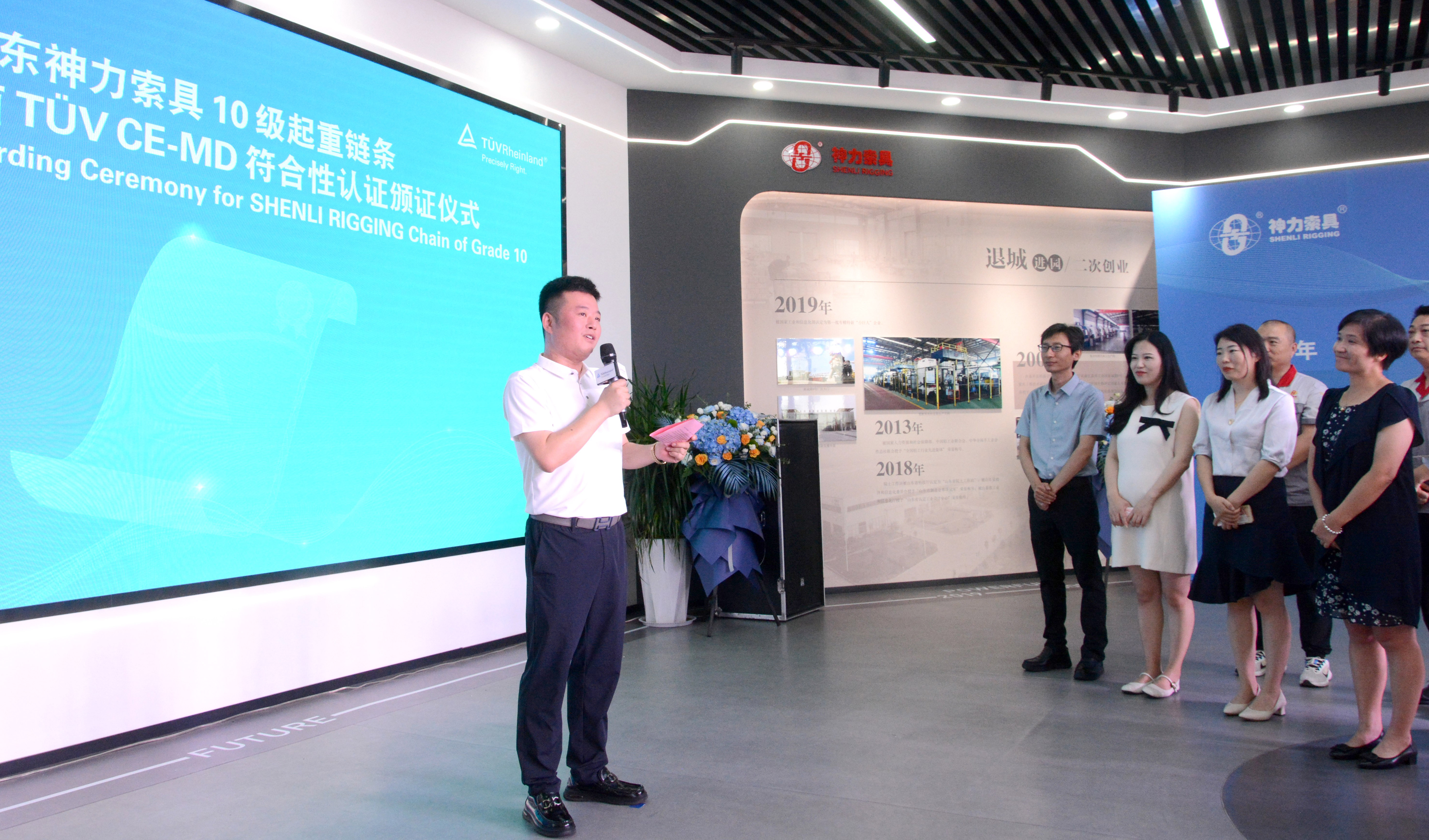 TÜV萊茵代表萊茵大中華區(qū)輕工產品服務副總裁熊劍蓉在致辭中表示,此次授牌是萊茵與神力索具合作的全新突破,10級起重鏈條的符合性認證在歐盟當屬首家,萊茵將繼續(xù)不斷探索與神力索具深度合作,向企業(yè)低碳生產、高質量發(fā)展、轉型升級等探索更多全新合作模式,為神力索具提供更全面、更貼合企業(yè)發(fā)展現(xiàn)狀的個性化服務,為企業(yè)轉型上市、可持續(xù)發(fā)展探索持續(xù)加力,贏得更加廣泛長久的合作機會。