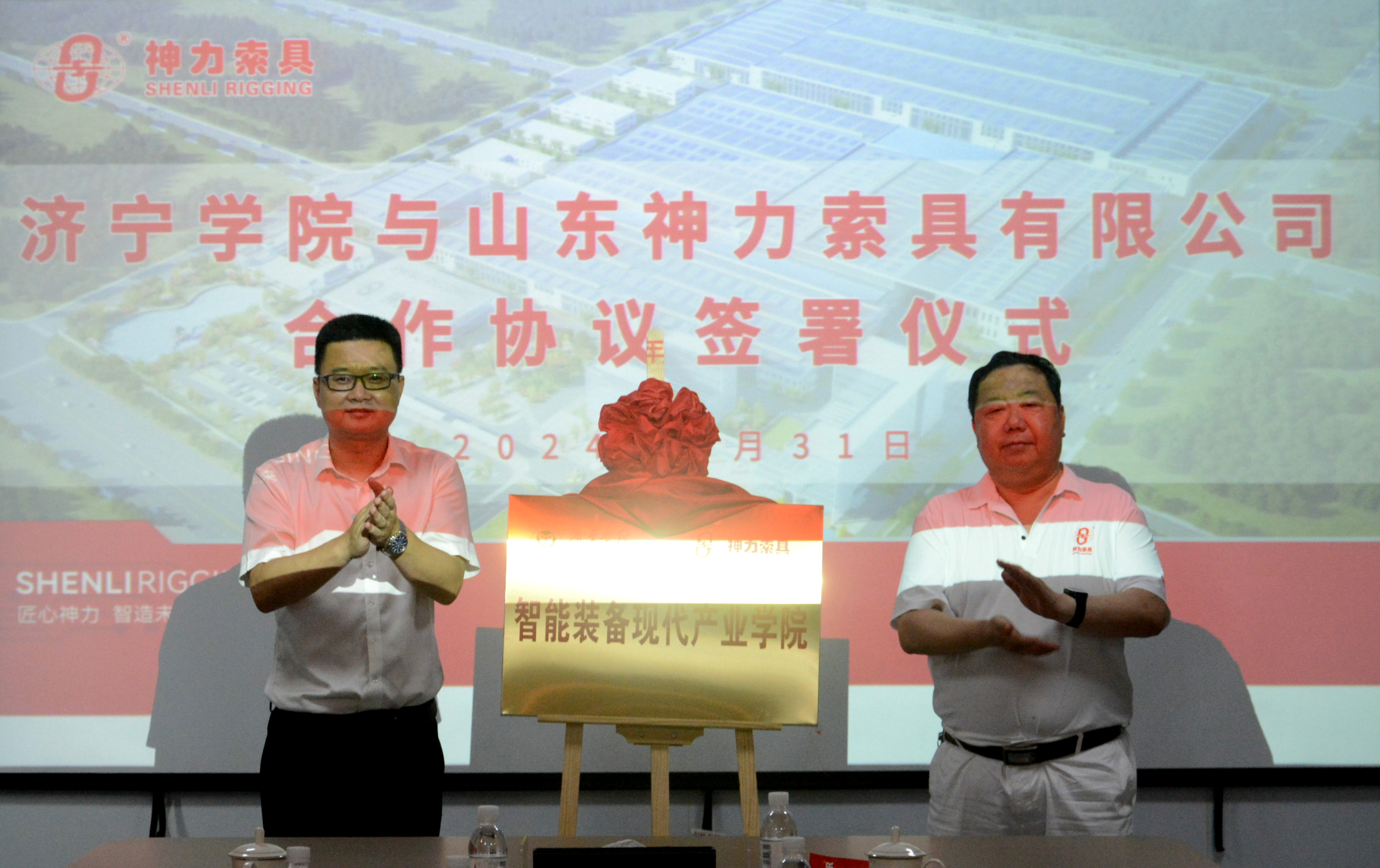 濟(jì)寧學(xué)院副校長劉國棟與神力索具黨委書記杜亞中共同為“濟(jì)寧學(xué)院實(shí)踐教學(xué)基地”、“濟(jì)寧學(xué)院-神力索具智能裝備現(xiàn)代產(chǎn)業(yè)學(xué)院”揭牌。劉國棟表示,神力索具作為市域智能制造轉(zhuǎn)型升級模范企業(yè),是廣大理工科學(xué)子向往的實(shí)踐寶地,通過合作建立該學(xué)院,將大大提高實(shí)踐教學(xué)質(zhì)量,激發(fā)廣大學(xué)子科技創(chuàng)新精神、創(chuàng)業(yè)能力和實(shí)踐能力。校企合作,互利共贏。在未來將形成更多的高質(zhì)量合作成果,推動區(qū)域高質(zhì)量發(fā)展。